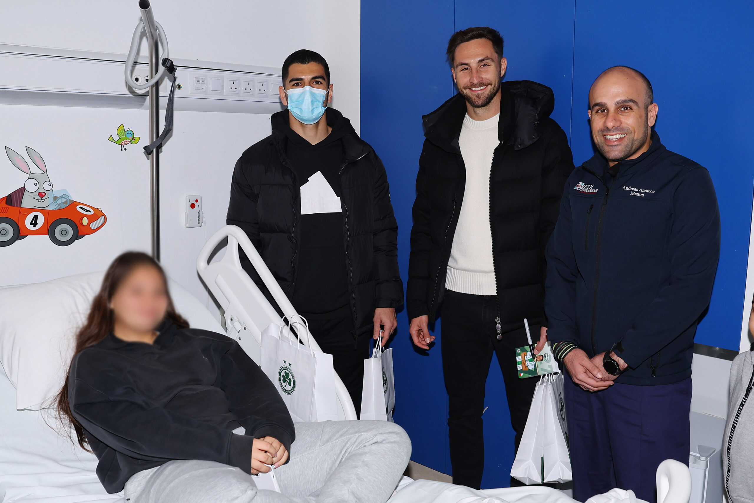 Εκ μέρους της ΟΜΟΝΟΙΑΣ έδωσαν το παρών τους δύο ποδοσφαιριστές, ο αρχηγός, Γιάννης Κούσουλος και ο Στέφαν Σίμιτς, οι οποίοι μοίρασαν δώρα στα παιδάκια και τους ευχήθηκαν ταχεία ανάρρωση και επιστροφή στην καθημερινότητά τους.